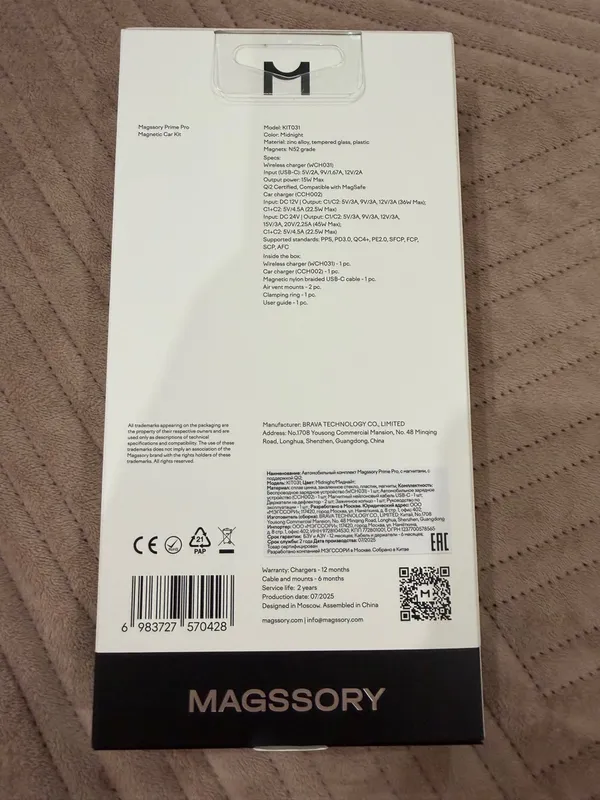 Отличный автомобильный комплект Magssory Prime Pro! Зарядка 15 Вт по Qi2 работает стабильно, магниты держат телефон мёртвой хваткой. Полный комплект с адаптером 45 Вт и кабелем — всё удобно и премиально. Рекомендую!