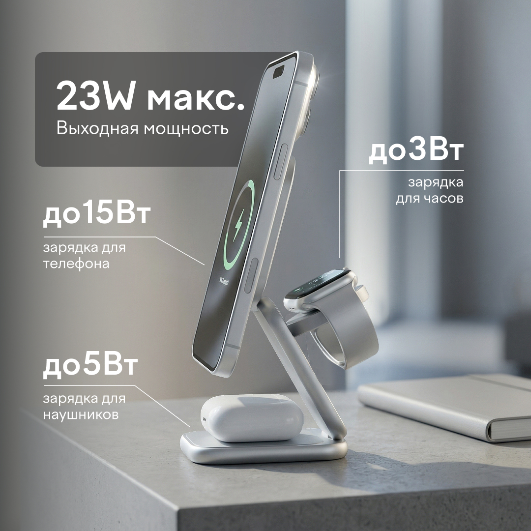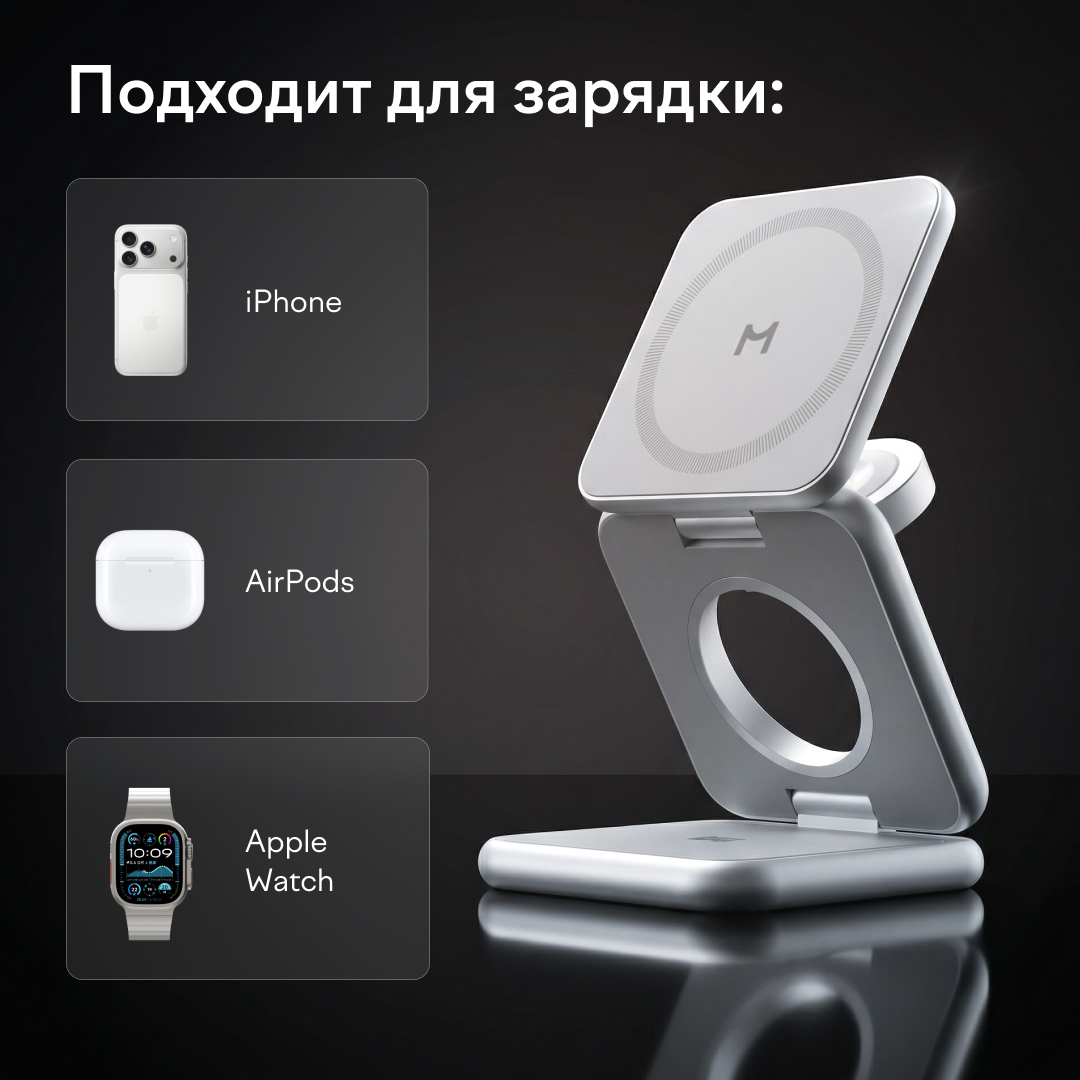 Зарядная станция Magssory Fold Pro 3 в 1 Silver