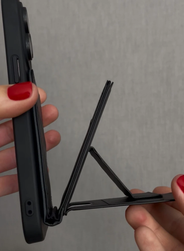Очень удобный картхолдер. Вмещает все мои банковские карты. Устойчивый,не заваливается. Удобно смотреть видео и снимать истории в соц.сети. Магнит хорошо держит