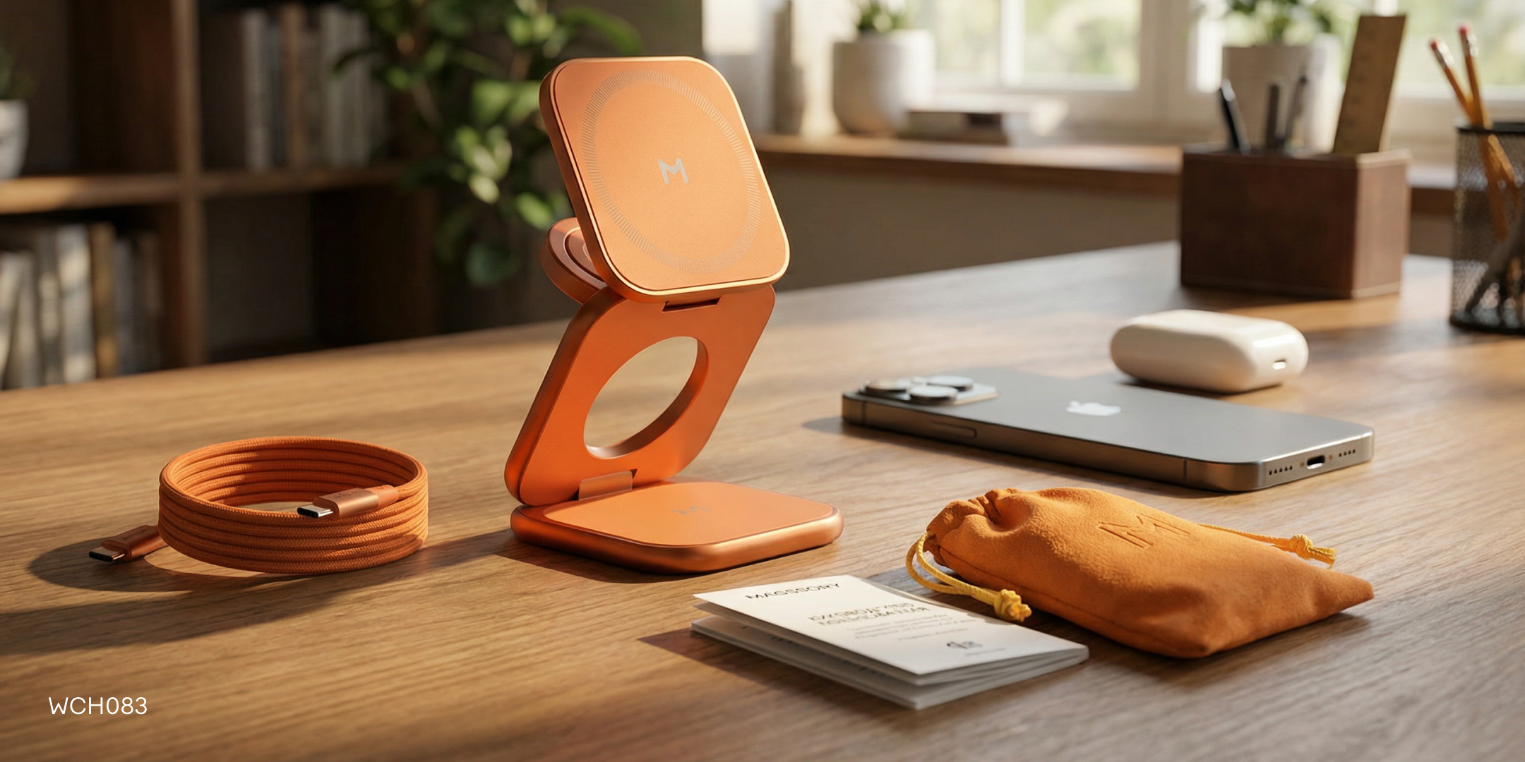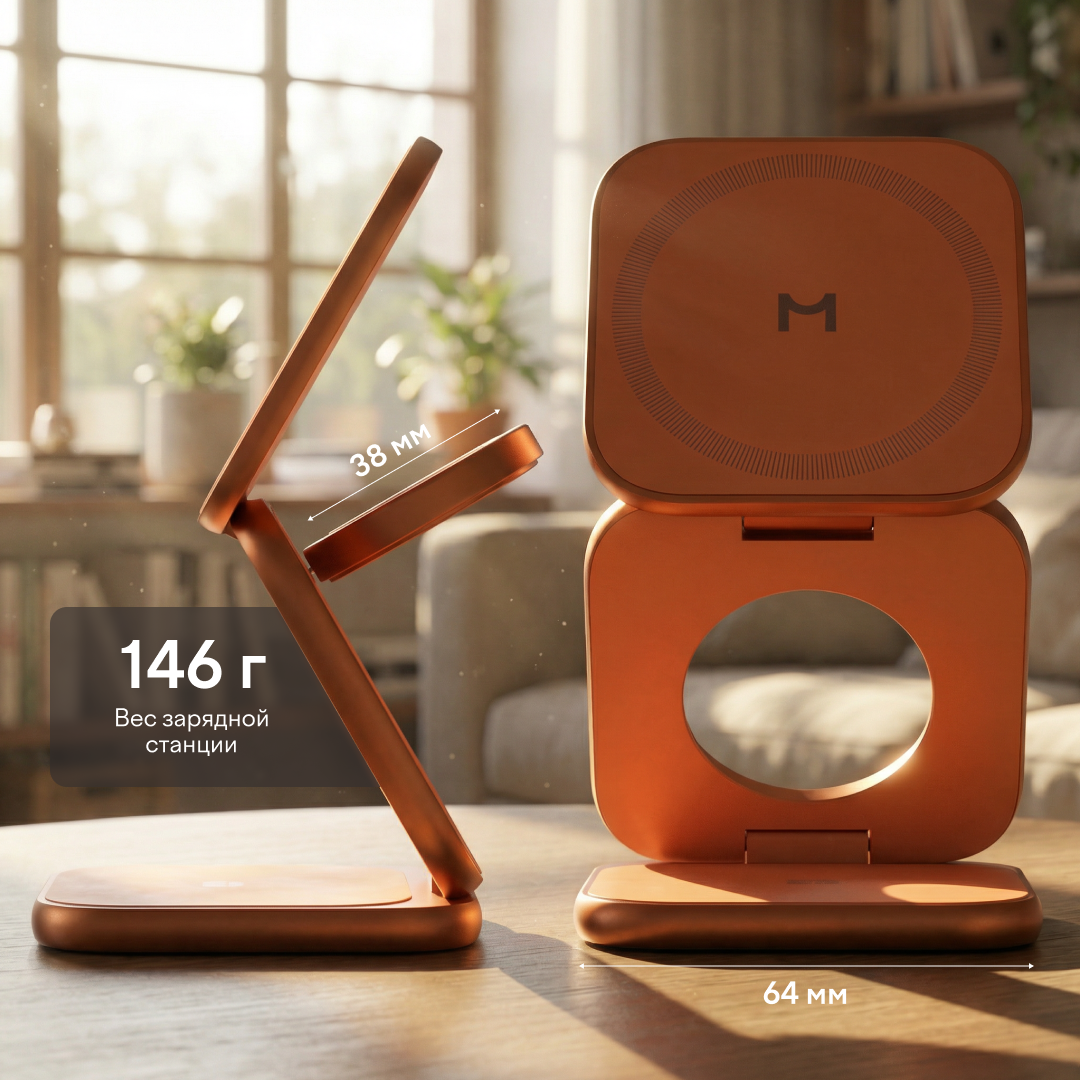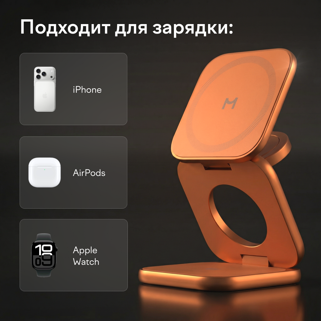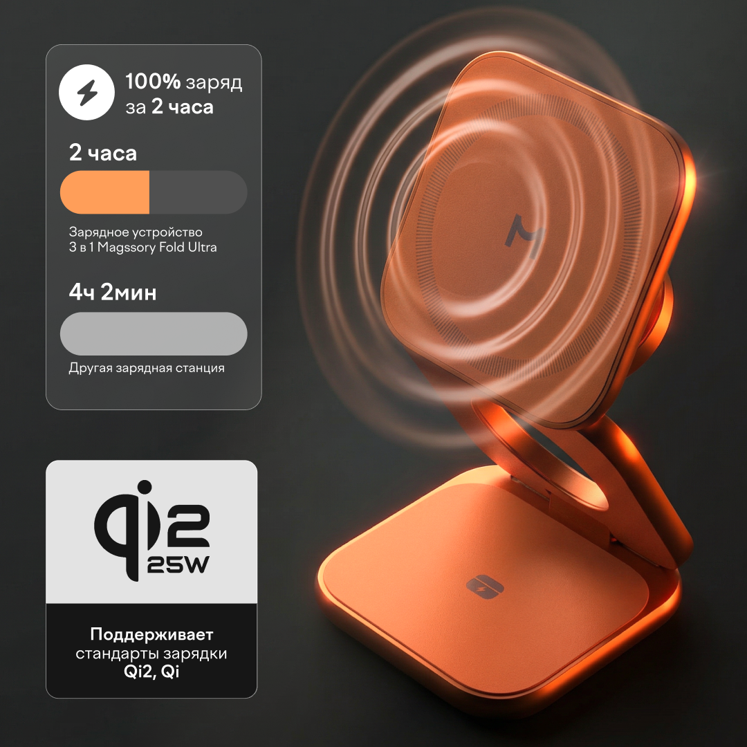 Складное беспроводное зарядное устройство 3 в 1 Magssory Fold Ultra для Apple Orange