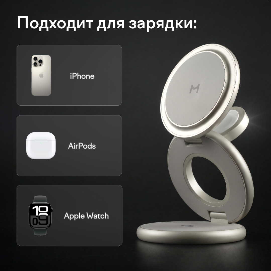 Зарядная станция 3 в 1 Magssory Signature Disc Pro для Apple Qi2 Titan