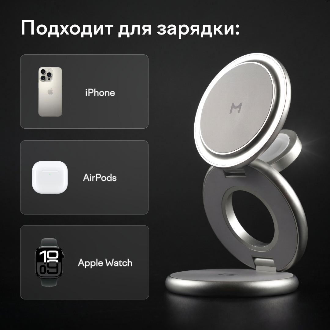 Зарядная станция Magssory Disc Signature Edition 3 в 1 для Apple Midnight