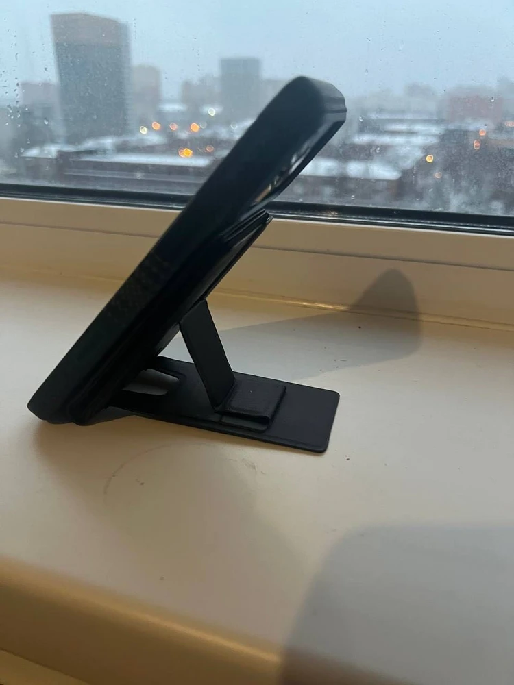 Очень удобный картхолдер. Вмещает все мои банковские карты. Устойчивый,не заваливается. Удобно смотреть видео и снимать истории в соц.сети. Магнит хорошо держит