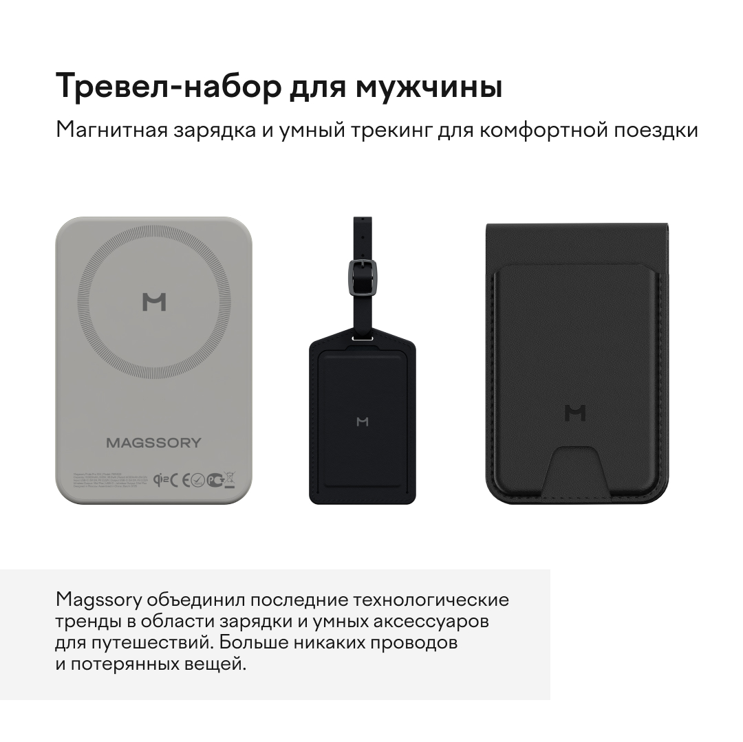 Magssory объединил последние технологические тренды в области зарядки и умных аксессуаров для путешествий. Больше никаких проводов и потерянных вещей.